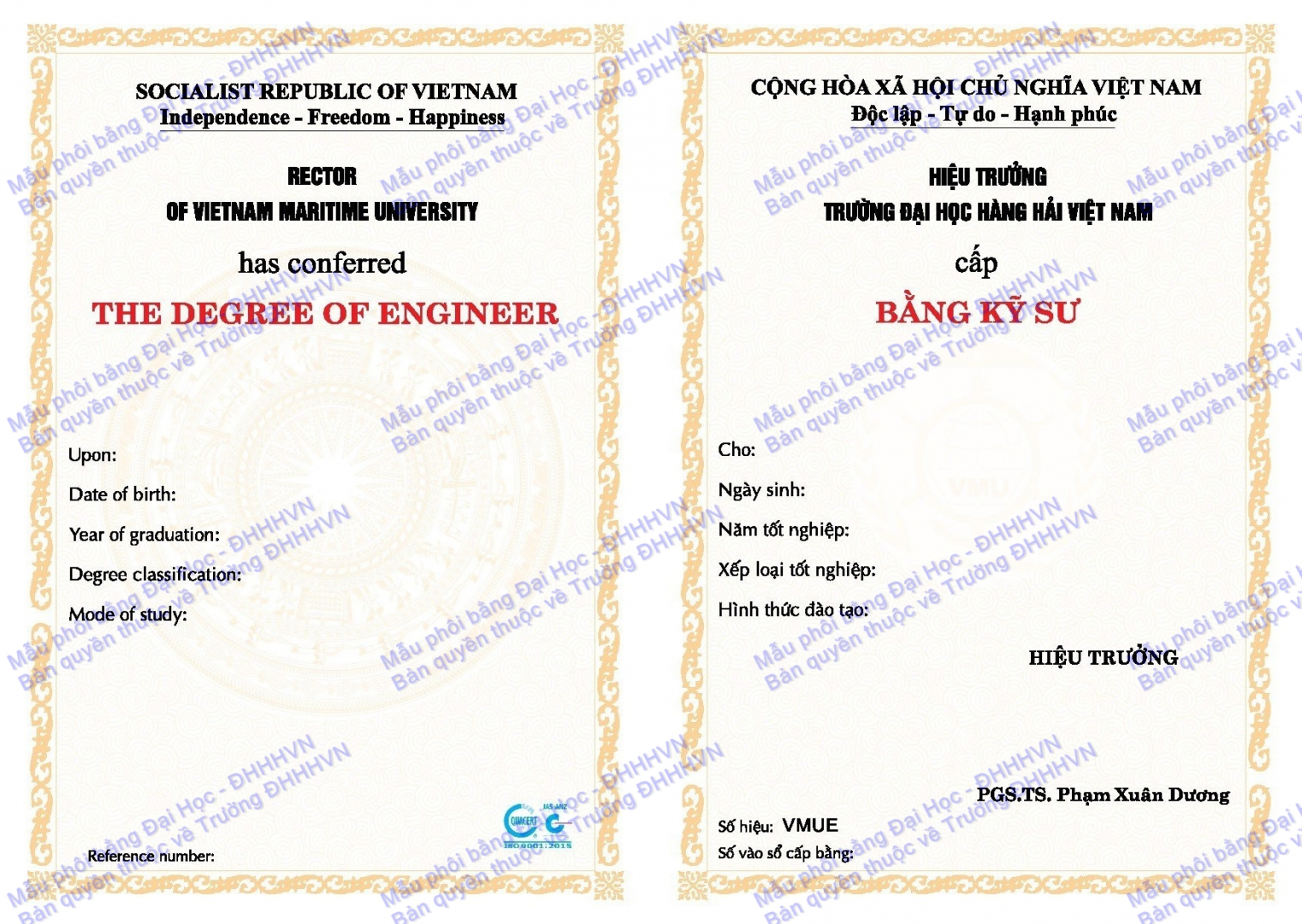 Mẫu văn bằng Đại học của Trường Đại học Hàng hải Việt nam
