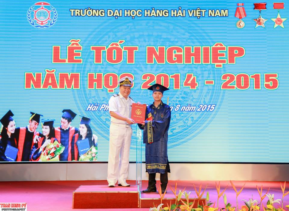 08h00 ngày 08/08/2015 tại Hội trường lớn, Trường Đại học Hàng hải Việt Nam đã long trọng tổ chức Lễ tốt nghiệp Đại học năm học 2014-2015 cho các Tân cử nhân, kỹ sư. Tới dự với buổi lễ có NGND.PGS.TS Lương Công Nhớ - Bí thư Đảng ủy, Hiệu trưởng Nhà trường; các đồng chí trong BCH Đảng ủy, Ban Giám hiệu, Công đoàn, Đoàn TN, Thủ trưởng các đơn vị, Ban Chủ nhiệm, Giáo vụ các Khoa, Viện, và 710 tân cử nhân, kỹ sư đại diện cho 1256 sinh viên tốt nghiệp đợt 2 năm học 2014-2015 cùng đông đảo bạn bè, gia đình đến chia vui và chúc mừng cho các Tân cử nhân, kỹ sư.