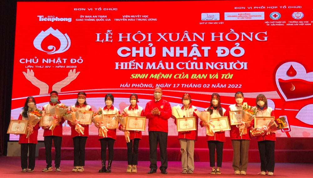 08h00 ngày 17/02/2022, Trường Đại học Hàng hải Việt Nam phối hợp với Báo Tiền Phong, Hội Chữ thập đỏ Hải Phòng, Trung tâm huyết học truyền máu Hải Phòng, Thành Đoàn - Hội Sinh viên Thành phố Hải Phòng, tổ chức chương trình “Lễ hội Xuân hồng - Chủ nhật Đỏ lần thứ 14 năm 2022”. Chương trình được tổ chức với mục đích tuyên truyền, vận động các lực lượng xã hội tích cực hưởng ứng phong trào hiến máu tình nguyện, từng bước mở rộng đối tượng tham gia hiến máu, góp phần dự phòng tình trạng thiếu máu trong dịp Tết nguyên đán 2022 và dịch Covid-19 vẫn đang diễn ra.