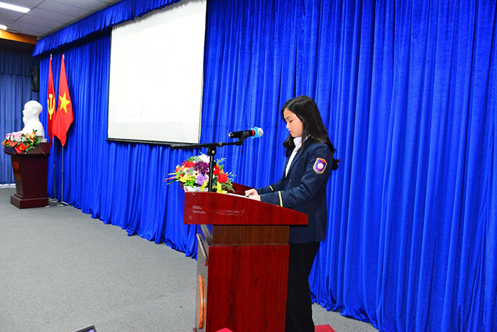 Đại diện các bạn sinh viên phát biểu chúc Tết các thầy cô giáo và bày tỏ lòng biết ơn sâu sắc tới công ơn dạy dỗ, chỉ bảo của các thầy cô, sự quan tâm chỉ đạo và động viên cả về vật chất và tinh thần của các thầy cô là lãnh đạo Trường Đại học Hàng hải Việt Nam.