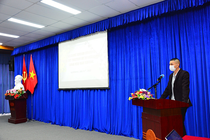 Phát biểu tại buổi gặp mặt, PGS.TS Nguyễn Minh Đức - Phó Hiệu trưởng Nhà trường điểm qua những thành tựu mà Nhà trường đã đạt được trong năm qua đồng thời ghi nhận những nỗ lực cố gắng trong học tập của các em lưu học sinh, sinh viên có hoàn cảnh khó khăn. Qua đây Thầy gửi lời chúc các em đón Tết vui vẻ,  hạnh phúc, ấm cúng và đầy ý nghĩa cùng đất nước, con người Việt Nam. Cũng trong buổi gặp gỡ này, Thầy đã trao quà cho 26 lưu học sinh quốc tế đang học tập tại Trường Đại học Hàng hải Việt Nam đến từ Lào, Campuchia, Angola, Nigeria, Hàn Quốc, Mozambique, Nam Phi, Bắc Triều Tiên, Malaysia....cùng 52 sinh viên có hoàn cảnh khó khăn.