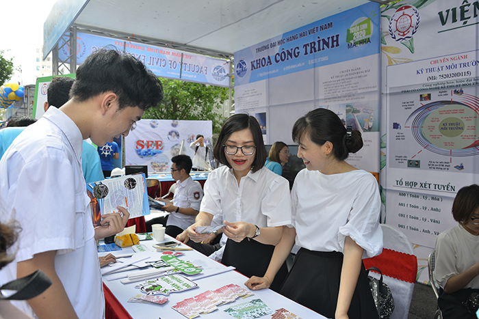 Đến với gian hàng của các Khoa, Viện thuộc Trường Đại học Hàng hải Việt Nam thí sinh được tư vấn chương trình đào tạo song ngữ, chuyển tiếp quốc tế, kỹ năng nghề nghiệp, phương pháp học tập, rèn luyện tiếng Anh, chính sách học phí, học bổng và phương thức tuyển sinh.