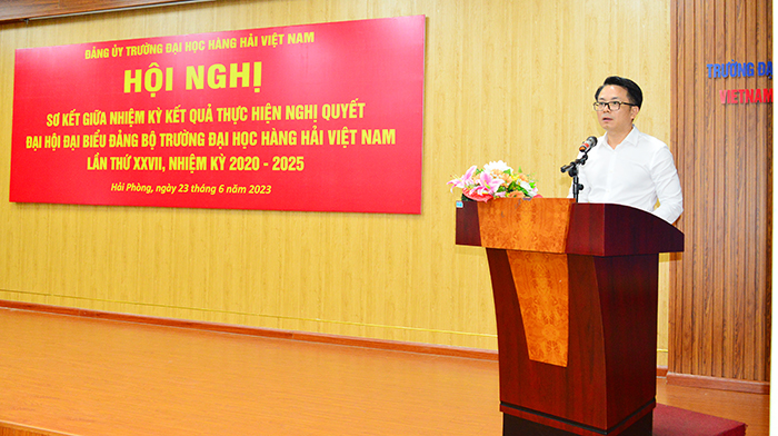 Sáng 23/6, Đảng ủy Trường Đại học Hàng hải Việt Nam tổ chức Hội nghị sơ kết giữa nhiệm kỳ kết quả thực hiện Nghị quyết Đại hội Đảng bộ Trường lần thứ XXVII gắn với việc thực hiện Nghị quyết Đại hội Đảng toàn quốc lần thứ XIII và Nghị quyết Đại hội Đảng bộ thành phố lần thứ XVI (nhiệm kỳ 2020-2025). Đồng chí Lê Trí Vũ - Uỷ viên Ban Thường vụ Thành ủy, Trưởng Ban Dân vận Thành ủy dự và chỉ đạo Hội nghị.