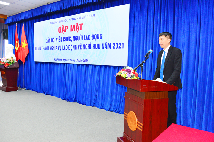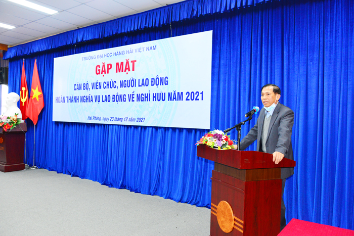 Tại buổi gặp mặt, PGS.TS Phạm Xuân Dương – Phó Bí thư Đảng ủy, Hiệu trưởng Nhà trường thay mặt Đảng ủy, Ban Giám Hiệu Trường Đại học Hàng hải Việt Nam bày tỏ lòng kính trọng và biết ơn của toàn thể CB, GV, CNV tới các đồng chí cán bộ đã có thời gian công tác, cống hiến, đóng góp, xây dựng vào sự phát triển chung của Trường Đại học Hàng hải Việt Nam.