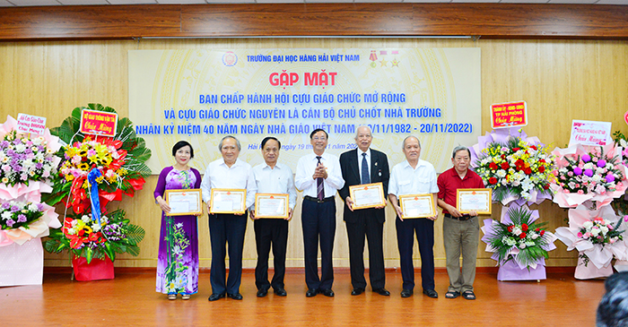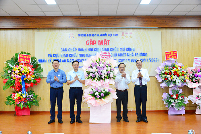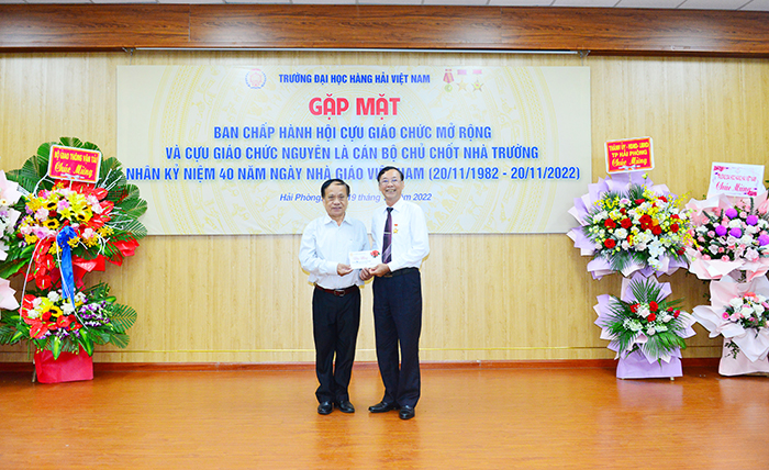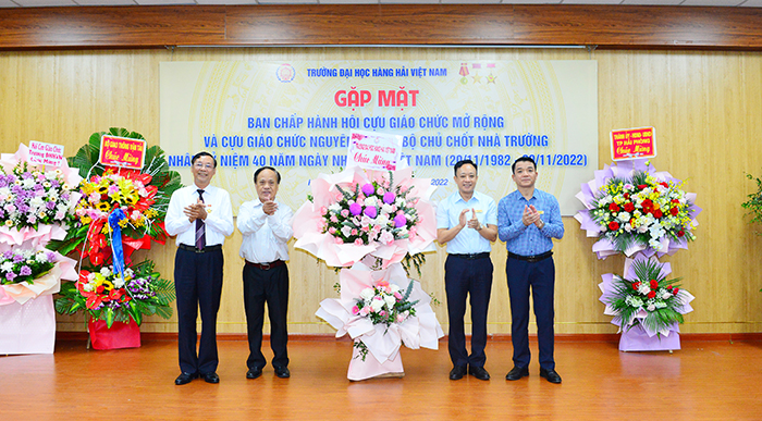 09h00 ngày 19/11, Hội cựu giáo chức Nhà trường phối hợp với Trường Đại học Hàng hải Việt Nam tổ chức Buổi gặp mặt thân mật nhân dịp kỷ niệm 40 năm ngày Nhà giáo Việt Nam (20/11/1982 - 20/11/2022) nhằm tri ân các thế hệ cán bộ, giảng viên, người lao động Nhà trường đã nghỉ hưu; tạo cơ hội gặp gỡ, giao lưu giữa lãnh đạo Nhà trường, Công đoàn, Đoàn thanh niên Nhà trường với cựu giáo chức nguyên là lãnh đạo, thủ trưởng, chủ tịch Công đoàn các đơn vị trực thuộc Trường.