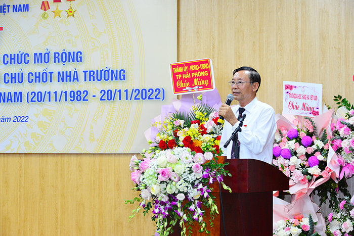Nhà giáo Vũ Văn Phong - Chủ tịch Hội Cựu giáo chức Trường Đại học Hàng hải Việt Nam phát biểu
