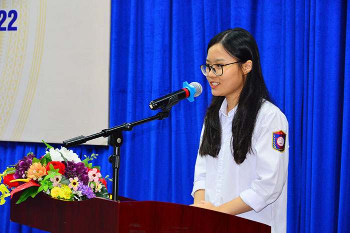 Sinh viên Ngô Thị Diệu Linh - lớp LQC60ĐH đại diện cho các em sinh viên đạt giải phát biểu
