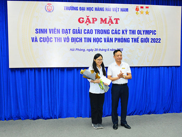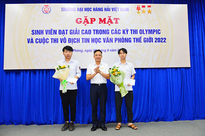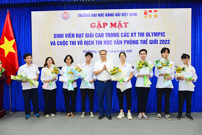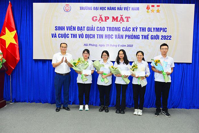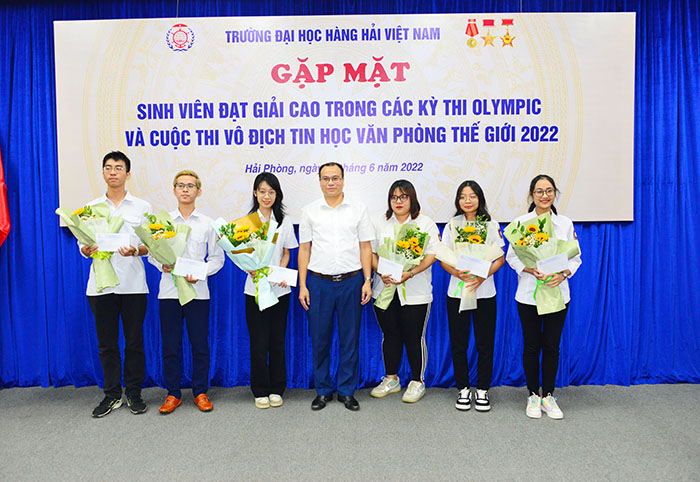 16h00 ngày 29/06/2022, PGS.TS Phạm Xuân Dương - Phó Bí thư Đảng ủy, Hiệu trưởng Trường ĐHHHVN chủ trì buổi Gặp mặt sinh viên đạt giải cao trong các kỳ thi Olympic và Vô địch tin học văn phòng thế giới 2022 nhằm kịp thời động viên, khen thưởng, chia sẻ niềm vui chiến thắng với thầy, trò tham gia thi đấu.