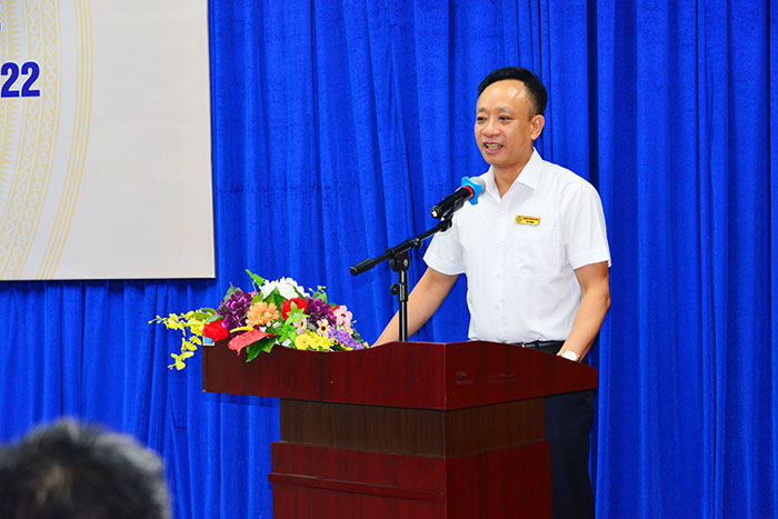 Thầy Nguyễn Văn Trịnh - Giảng viên khoa Cơ sở cơ bản đại diện cho các thầy/cô tham gia giảng dạy, ôn luyện dẫn đội phát biểu