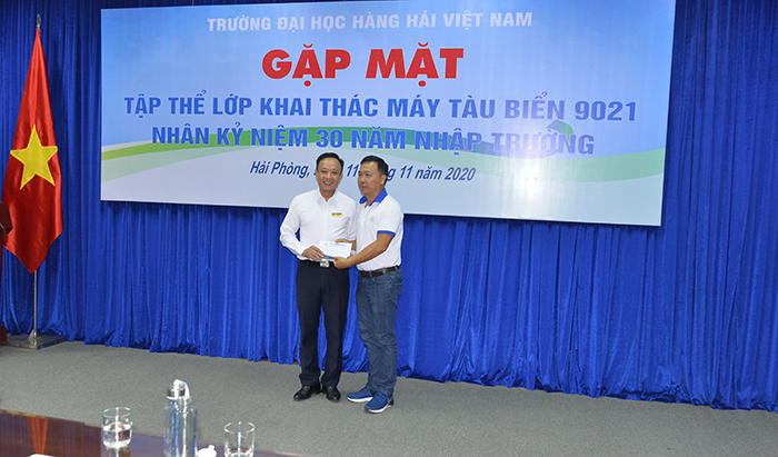 Cũng tại buổi gặp mặt, đại diện tập thể lớp Khai thác Máy tàu biển 9021 gửi tới Ban lãnh đạo món quà ủng hộ quỹ khuyến học của Trường Đại học Hàng hải Việt Nam.