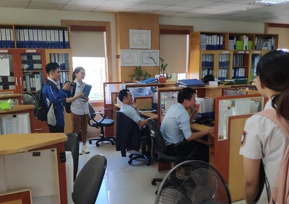 Sinh viên logistics khoa Kinh tế trường Đại Học Hàng Hải đi thực tế tại phòng kỹ thuật công ty vận tải biển HTK.
