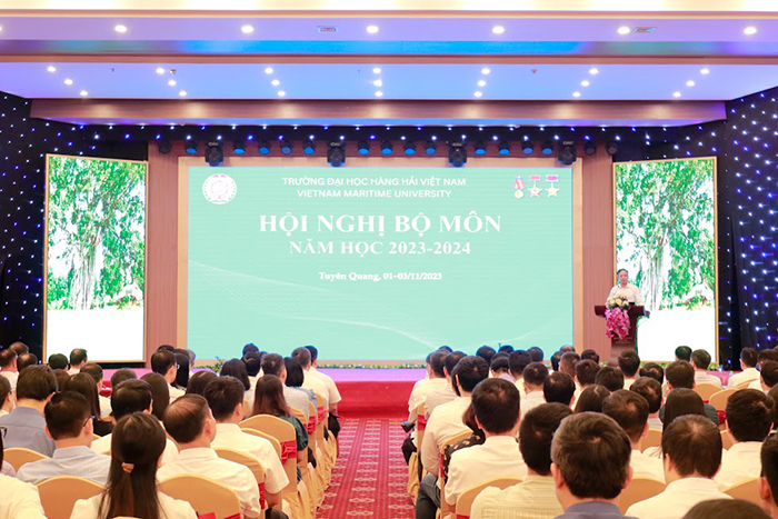 Từ ngày 01-03/11/2023, tại Tuyên Quang, Trường Đại học Hàng hải Việt Nam đã tổ chức Hội nghị Bộ môn năm học 2023-2024 với chủ “Nâng cao vai trò của Bộ môn trong quản lý học thuật. Phát triển các giải pháp mới nhằm thực hiện tốt tự chủ đại học”. Đại biểu dự Hội nghị gồm các đồng chí trong BCH Đảng bộ Trường, Chủ tịch và Phó chủ tịch Hội đồng trường, Ban giám hiệu, Chủ tịch và Phó Chủ tịch Công đoàn Trường, Bí thư Đoàn TNCSHCM, Chủ tịch HSV Trường, cán bộ chủ chốt các đơn vị trực tiếp tham gia công tác đào tạo, huấn luyện và đặc biệt có sự tham gia của Trưởng, Phó các bộ môn trong Toàn Trường.