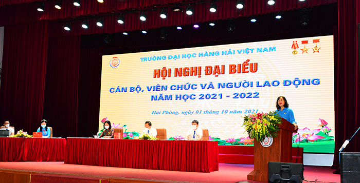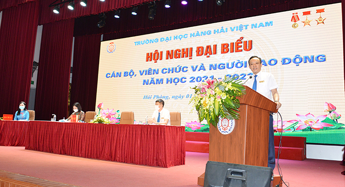 08h00 ngày 01/10/2021, tại Hội trường A8, Trường Đại học Hàng hải Việt Nam tổ chức Hội nghị đại biểu cán bộ, viên chức và người lao động năm học 2021-2022 để đánh giá kết quả thực hiện Nghị quyết Hội nghị CB, VC, NLĐ, tổng kết phong trào thi đua năm học 2020-2021, triển khai phương hướng, nhiệm vụ năm học 2021-2022, giải đáp các kiến nghị, đề xuất của CB, VC, NLĐ. Nhà trường đảm bảo tuân thủ chặt chẽ các yêu cầu về phòng chống dịch bệnh Covid-19.