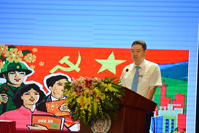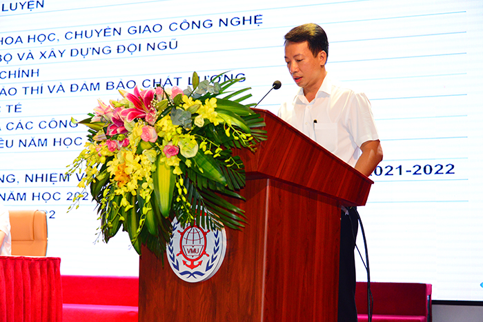 PGS.TS Nguyễn Thanh Sơn – Phó Hiệu trưởng Nhà trường báo cáo kết quả thực hiện Nghị quyết Hội nghị CB, VC, NLĐ năm học 2020-2021 và phương hướng nhiệm vụ năm học 2021-2022.