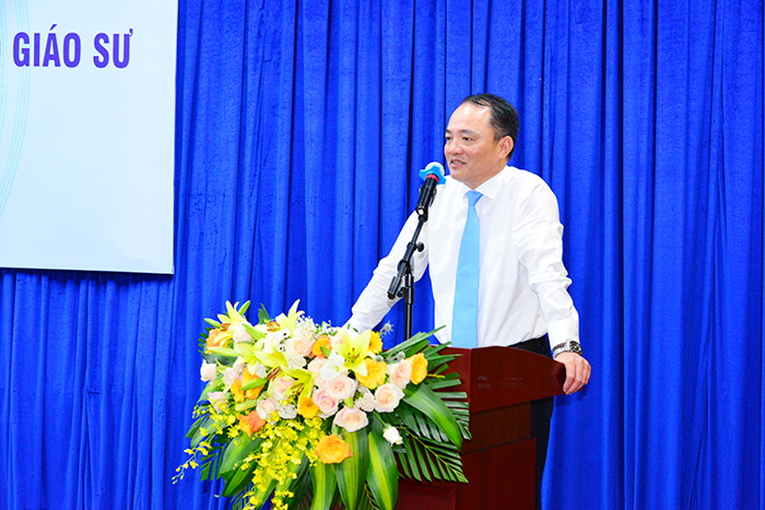 Phát biểu tại buổi Hội nghị công bố Quyết định bổ nhiệm, PGS.TS.Phạm Xuân Dương – Phó Bí thư Đảng ủy, Hiệu trưởng Nhà trường chúc mừng các Tân Giáo sư, Tân Phó Giáo sư khi các ứng viên đã vượt qua nhiều vòng tuyển chọn khắt khe để được đứng lên bục vinh danh ngày hôm nay. Hiệu trưởng nhấn mạnh: Đội ngũ Giáo sư và Phó Giáo sư là lực lượng quan trọng trong đào tạo và nghiên cứu khoa học, là lực lượng vững mạnh, luôn có những bước đi vững chắc đồng hành sự phát triển Nhà trường.