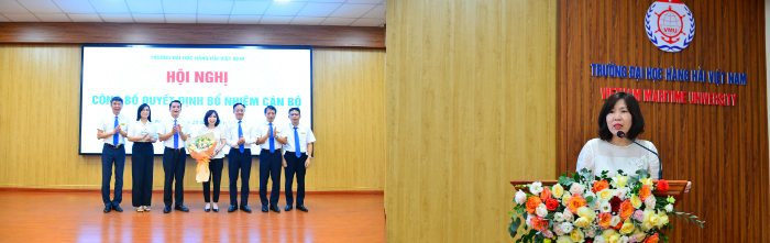 Tại Hội nghị, thừa ủy quyền của Hiệu trưởng Nhà trường, PGS.TS. Nguyễn Huy Hào - Uỷ viên Ban Thường vụ Đảng uỷ, Trưởng phòng Tổ chức - Hành chính đã công bố Quyết định giao bà Vũ Kim Trang, Phó Trưởng phòng Kế hoạch - Tài chính phụ trách Phòng Kế hoạch - Tài chính thuộc Trường Đại học Hàng hải Việt Nam kể từ ngày 01/09/2024 cho đến khi kiện toàn chức vụ Trưởng phòng Kế hoạch - Tài chính: