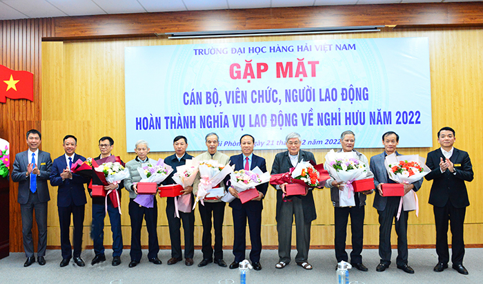 10h ngày 21 tháng 12 năm 2022, Trường Đại học Hàng hải Việt Nam đã tổ chức tiếp xúc thân mật với 28 đồng chí được nghỉ hưu năm 2022 nhằm bày tỏ lòng tri ân tới các đồng chí trong những năm công tác tại Trường đã có những đóng góp cho sự nghiệp giáo dục và đào tạo, góp phần tạo nên vị thế của Nhà trường ở trong nước và quốc tế.