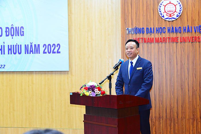 Tại buổi gặp mặt, PGS.TS Phạm Xuân Dương - Phó Bí thư Đảng ủy, Hiệu trưởng Nhà trường thay mặt Đảng ủy, Ban Giám Hiệu Trường Đại học Hàng hải Việt Nam bày tỏ lòng kính trọng và biết ơn của toàn thể CB, GV, CNV tới các đồng chí cán bộ đã có thời gian công tác, cống hiến, đóng góp, xây dựng vào sự phát triển chung của Trường. Trải qua hơn 66 năm xây dựng và phát triển, Trường Đại học Hàng hải Việt Nam đã đạt được những thành tích rất đáng tự hào góp phần phục vụ cho sự nghiệp phát triển kinh tế - xã hội, đảm bảo an ninh - quốc phòng của thành phố Hải Phòng, ngành Giao thông vận tải và đất nước. Vinh quang thuộc về các thế hệ nối tiếp các nhà giáo đã và đang cần mẫn, tận tâm ngày đêm đóng góp quan trọng và quyết định đến việc ươm trồng các thế hệ các nhà quản lý và chuyên gia cho đất nước, “từng viên gạch xây lên đều là những giọt mồ hôi, sương máu của các thế hệ nối tiếp ấy.”