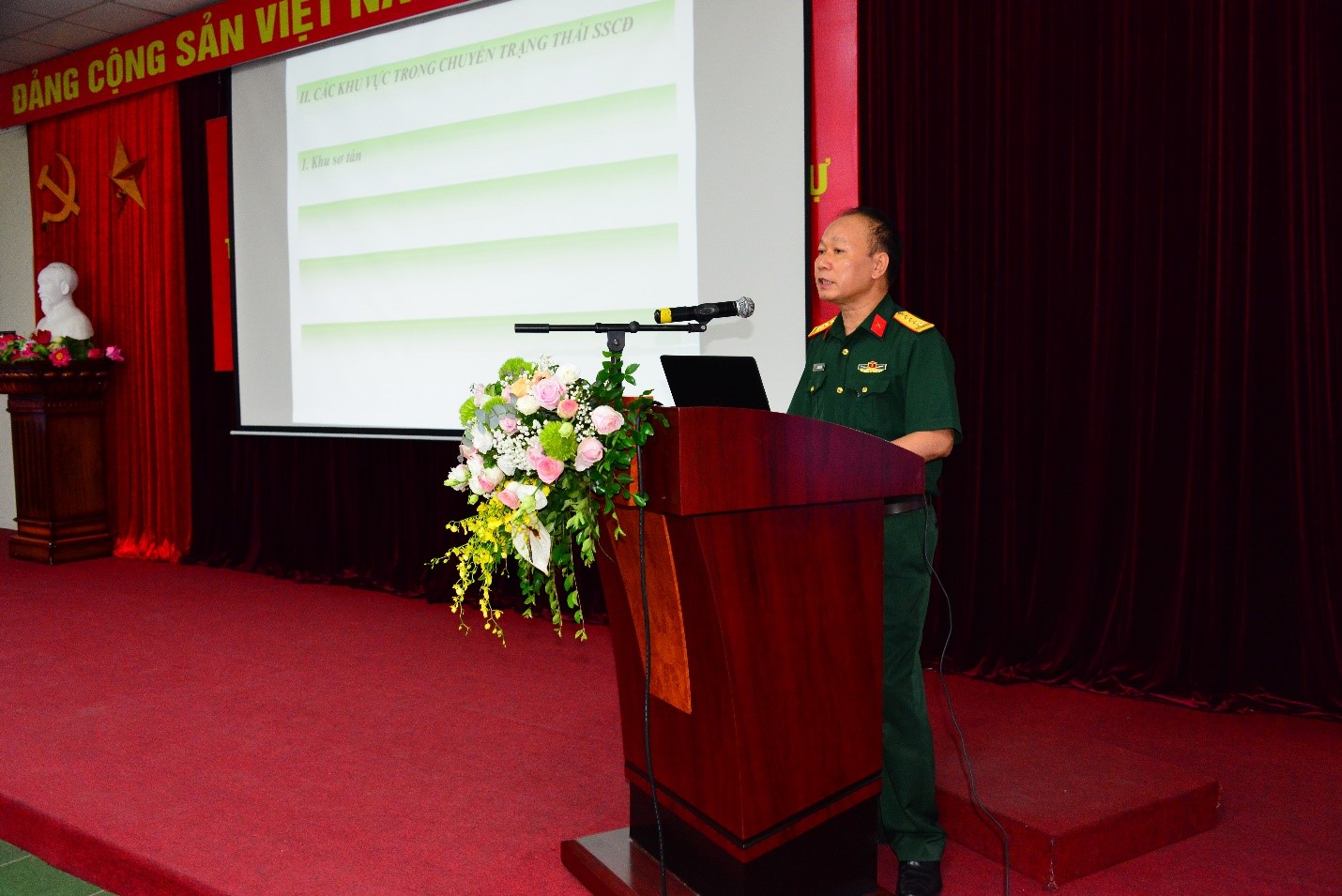 Đại tá Nguyễn Văn Ân - Phó trưởng phòng Huấn luyện chiến dịch. Cục tác chiến Bộ quốc phòng báo cáo chuyên đề
