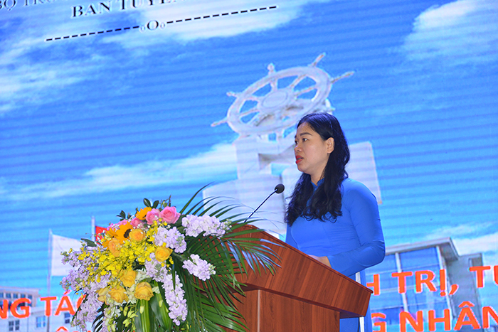 Ý kiến tham luận của Ban Tuyên giáo Đảng ủy Trường với nội dung: “Nâng cao hiệu quả công tác giáo dục chính trị, tư tưởng trong cán bộ, đảng viên và quần chúng, góp phần thực hiện thắng lợi nhiệm vụ chính trị của Nhà trường” do đồng chí Quách Thị Hà - Đảng ủy viên, Phó Trưởng ban Tuyên giáo Đảng ủy Trường, Phó Trưởng khoa Lý luận chính trị trình bày.