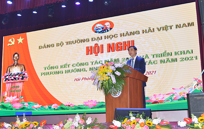 08h30 ngày 22-01-2021, Đảng ủy Trường Đại học Hàng hải Việt Nam đã tổ chức: “Hội nghị Tổng kết công tác Đảng năm 2020 và triển khai phương hướng, nhiệm vụ năm 2021” nhằm đánh giá những kết quả, thành tích của Đảng bộ Trường trong năm 2020, chỉ ra những tồn tại, hạn chế, nguyên nhân cũng như xác định phương hướng, công tác, nhiệm vụ trọng tâm trong năm 2021.