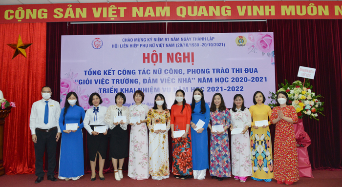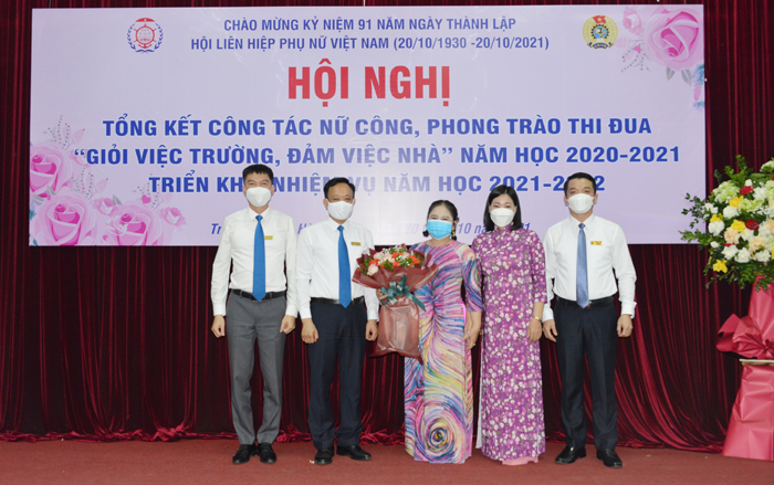 Phát biểu tại buổi lễ đồng chí Phạm Thị Xuân - UV BTVCĐ Trường, Trưởng ban Nữ công lên Báo cáo tổng kết công tác nữ công, phong trào thi đua “Giỏi việc Trường, đảm việc nhà” năm học 2020 - 2021 và triển khai hoạt động nữ công năm học 2021 - 2022. Theo báo cáo, trong năm học 2020-2021 Ban nữ công luôn khẳng định được vai trò quan trọng và có những đóng góp to lớn cho sự phát triển vững mạnh, toàn diện của Nhà trường mặc dù có nhiều khó khăn, thách thức và ảnh hưởng của dịch bệnh Covid-19; biểu dương khen ngợi những nữ CB, GV, NLĐ làm tốt phòng trào “Giỏi việc Trường, đảm việc Nhà”, “Gia đình tiêu biểu”, nữ CB, GV bảo vệ thành công luận án Tiến sĩ và các chị có con đạt thành tích cao trong năm học 2020-2021.