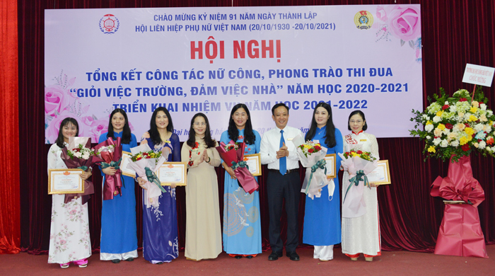Thay mặt lãnh đạo Nhà trường, PGS.TS Phạm Xuân Dương- Phó Bí thư Đảng ủy, Hiệu trưởng Nhà trường chúc mừng và biểu dương những thành tích mà nữ CB, GV, NLĐ đã đạt được trong năm học qua. Thầy Hiệu trưởng hy vọng trong thời gian tới, các cán bộ nữ của Nhà trường sẽ tiếp tục phát huy hơn nữa vai trò của mình trong gia đình, Nhà trường và xã hội.