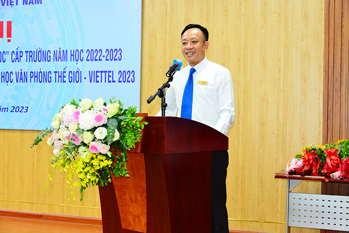 TS.Trần Thế Nam - Trưởng phòng Khoa học và Công nghệ phát biểu tổng kết hoạt động nghiên cứu khoa học sinh viên năm học 2022-2023 và cuộc thi vô địch tin học văn phòng thế giới - Viettel 2023