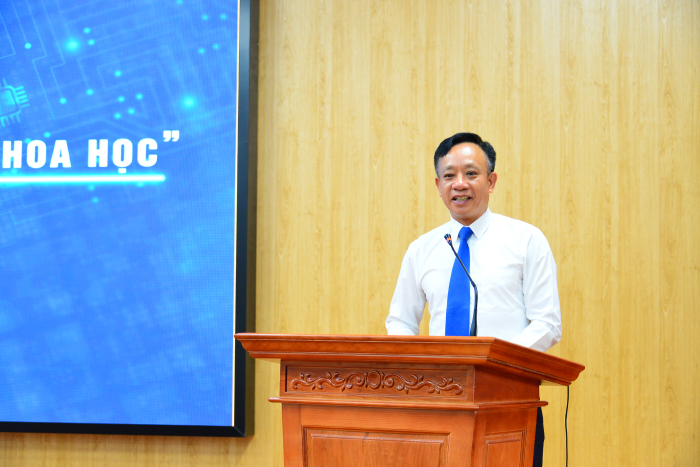 TS.Trần Thế Nam - Trưởng phòng Khoa học và Công nghệ phát biểu tổng kết hoạt động nghiên cứu khoa học sinh viên năm học 2023-2024