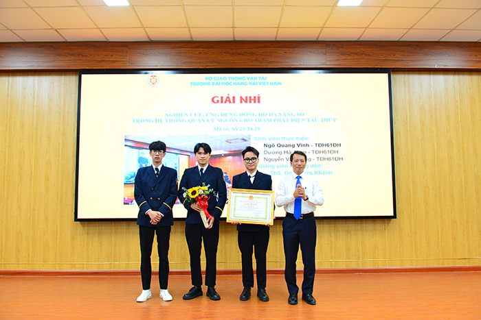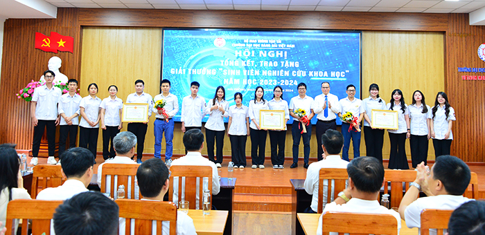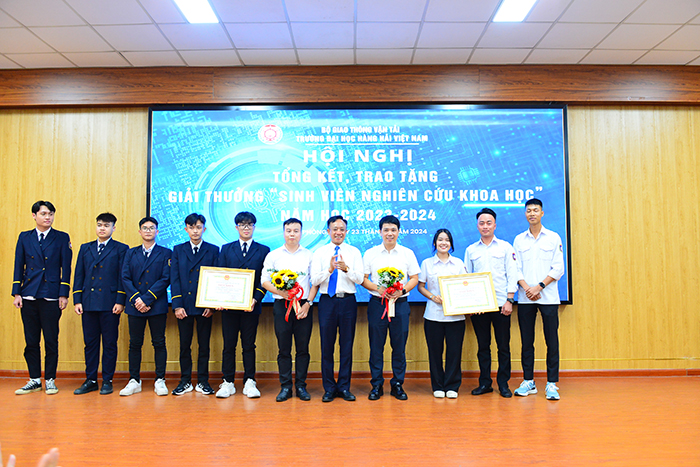 Chiều 23/5, Trường Đại học Hàng hải Việt Nam đã tổ chức Hội nghị Tổng kết và Trao tặng giải thưởng “Sinh viên nghiên cứu khoa học” năm học 2023-2024 dưới sự chủ trì của PGS.TS. Phạm Xuân Dương - Hiệu trưởng Nhà trường. Tham dự Hội nghị có các Thầy trong BGH Nhà trường, lãnh đạo các Khoa/Viện chuyên môn, các phòng ban liên quan, Đoàn TN, Hội sinh viên và đặc biệt là các thầy cô giảng viên hướng dẫn cùng các em sinh viên có công trình tham gia xét tặng giải thưởng cấp Trường năm học 2023-2024.