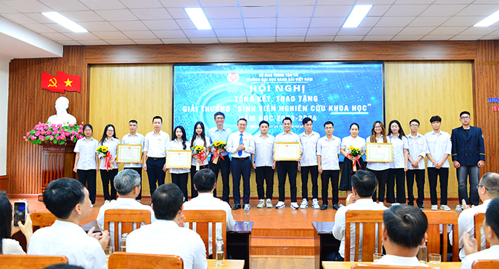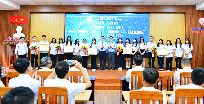 Hội nghị Tổng kết và xét tặng Giải thưởng “Nghiên cứu khoa học sinh viên” cấp Trường năm học 2023-2024 diễn ra trong 2 ngày 16 & 17/5/2024 trong không khí hưởng ứng Kỷ niệm 11 năm ngày Khoa học Công nghệ Việt Nam (18/5/2013 - 18/5/2024). Mỗi công trình nghiên cứu đều được các thành viên Hội đồng xét tặng đưa ra những đánh giá, góp ý chỉnh sửa giúp sinh viên thấy được điểm mạnh điểm yếu của nội dung và vấn đề nghiên cứu, từ đó hoàn thiện các sản phẩm công nghệ của các đề tài và sinh viên có thêm những bài học kinh nghiệm cho bản thân. Kết quả Hội nghị: 19/25 công trình nghiên cứu có điểm đánh giá từ cao xuống thấp được lựa chọn trao tặng giải thưởng “Sinh viên nghiên cứu khoa học” năm học 2023-2024, trong đó gồm 02 giải Nhất, 01 giải Nhì, 03 giải Ba và 13 giải Khuyến khích.