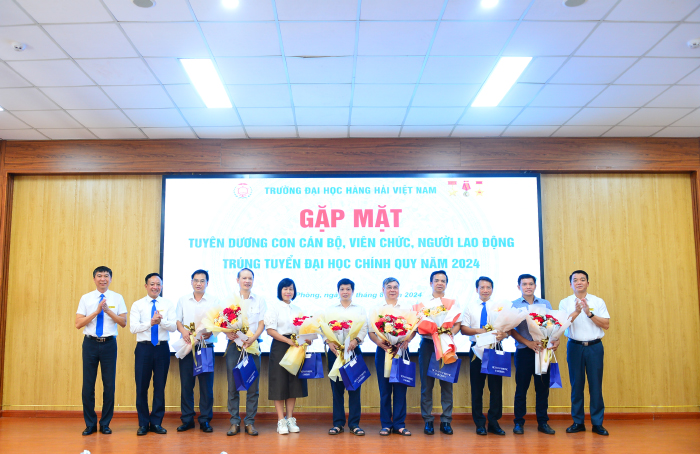 Trong kì thi THPT quốc gia vừa qua, toàn Trường có 55 cháu là con CB, GV, NLĐ đỗ vào các trường đại học trong nước và quốc tế. Thay mặt Nhà trường, PGS.TS.Phạm Xuân Dương - Hiệu trưởng Nhà trường chúc mừng thành tích đã đạt được của các em tân sinh viên cũng như sự cố gắng không mệt mỏi của các bậc Cha, Mẹ. Tương lai phía trước của các em đang rộng mở, sẽ là niềm tự hào cho gia đình, cho Trường Đại học Hàng hải Việt Nam - nơi Cha Mẹ các em đang công tác.