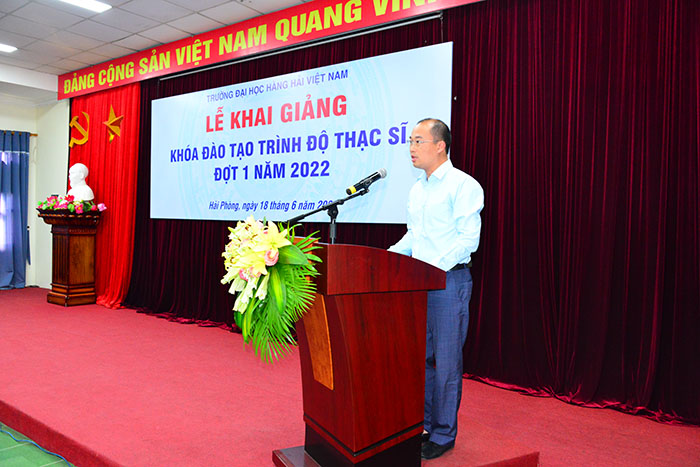Chiều 18/06/2022, Trường Đại học Hàng hải Việt Nam tổ chức Lễ Khai giảng khóa đào tạo trình độ Thạc sĩ đợt 1 năm 2022. Tham dự buổi lễ có PGS.TS Nguyễn Khắc Khiêm - Bí thư Đảng ủy, Chủ tịch Hội đồng Trường; PGS.TS Phạm Xuân Dương - Phó Bí thư Đảng ủy, Hiệu trưởng Nhà trường; đại diện các đoàn thể, phòng ban của Trường, lãnh đạo các Khoa/Viện chuyên môn tham gia trực tiếp vào công tác đào tạo, giảng dạy, các nhà khoa học, cùng 149 học viên cao học trúng tuyển đợt 1 năm 2022.