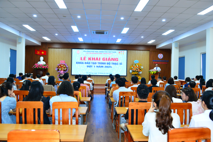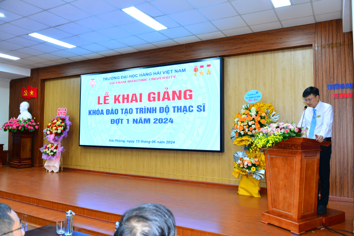 Chiều 15/6, Trường Đại học Hàng hải Việt Nam tổ chức Lễ Khai giảng khóa đào tạo trình độ Thạc sĩ đợt 1 năm 2024. Tham dự buổi lễ có PGS.TS. Nguyễn Khắc Khiêm - Bí thư Đảng ủy, Chủ tịch Hội đồng trường; PGS.TS. Phạm Xuân Dương - Hiệu trưởng Nhà trường; đại diện các đoàn thể, phòng ban của Trường, lãnh đạo các Khoa/Viện chuyên môn tham gia trực tiếp vào công tác đào tạo, giảng dạy, các nhà khoa học, cùng 152 học viên cao học trúng tuyển đợt 1 năm 2024.