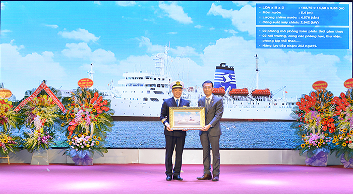 Ngài Jeong Woo Jin - Phó Đại sứ Đại Hàn Dân Quốc tại Việt Nam trao tài trợ tàu huấn luyện Hannara (nay đổi tên thành tàu VMU Việt-Hàn)