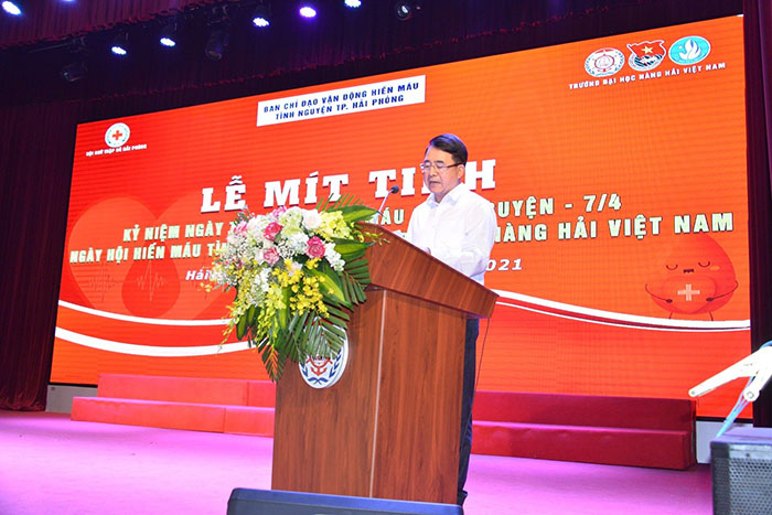 Phát biểu chỉ đạo tại Lễ mít tinh, đồng chí Lê Khắc Nam – Thành ủy viên, Phó Chủ tịch Ủy ban nhân dân Thành phố cho biết: tại Hải Phòng, những năm trước thành phố ta luôn trong tình trạng khan hiếm máu nhất là vào thời điểm đầu xuân và dịp hè. 10 năm trở lại lượng máu hiến tặng đã tăng lên và cơ bản khắc phục được tình trạng khan hiếm máu ngay cả lúc có dịch bệnh Covid-19. Năm 2020 đã tiếp nhận được 36.432 đơn vị máu (250ml) đạt 100,6% kế hoạch của Ban chỉ đạo Quốc gia giao cho thành phố. Tỷ lệ người hiến máu tình nguyện tiếp tục đạt hơn 97% và tỷ lệ người hiến máu nhắc lại đạt gần 50%. Tuy nhiên, so với tỷ lệ mà Tổ chức Y tế thế giới khuyến cáo về dự phòng là 2% dân số thành phố thì thành phố Hải Phòng mới đạt được 1,6% dân số. Vì vậy, cần chung sức làm tốt hơn nữa việc vận động hiến máu tình nguyện của thành phố mang tính bền vững.