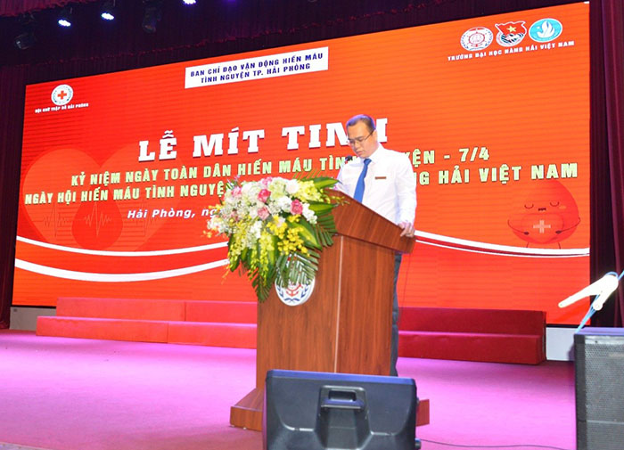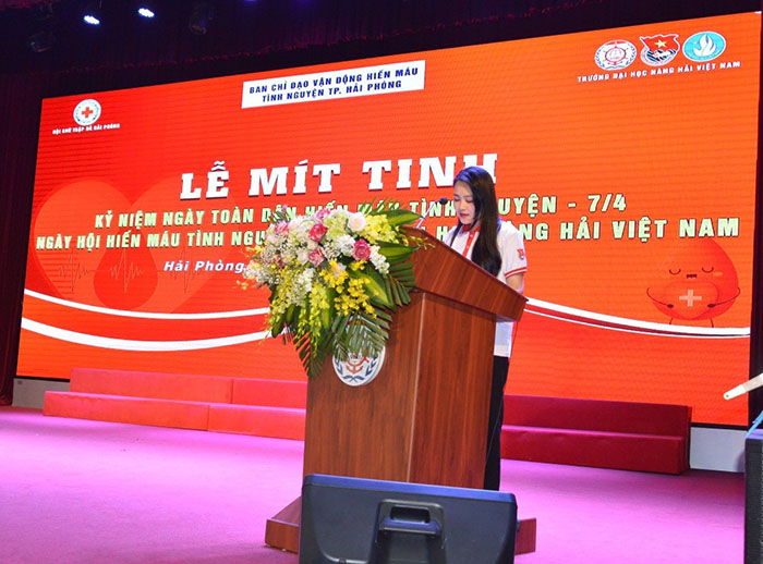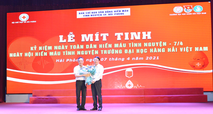 08h00 ngày 07/04/2021, Trường Đại học Hàng hải Việt Nam phối hợp với Ban chỉ đạo vận động hiến máu tình nguyện thành phố Hải Phòng và Hội chữ thập đỏ thành phố tổ chức “Lễ Mít tinh hưởng ứng Ngày toàn dân tham gia hiến máu tình nguyện - 7/4”. Đây là hoạt động tiêu biểu góp phần đẩy mạnh phong trào hiến máu tình nguyện vì sức khỏe cộng đồng trong cán bộ, giảng viên, viên chức, người lao động và sinh viên Nhà trường, thể hiện trách nhiệm với cộng đồng và tinh thần tương thân tương ái của dân tộc đồng thời là hoạt động góp phần tuyên truyền mục đích, ý nghĩa cao đẹp của hiến máu tình nguyện đến với đông đảo nhân dân thành phố Hải Phòng nói chung và Trường Đại học Hàng hải Việt Nam nói riêng.
