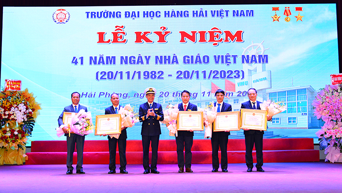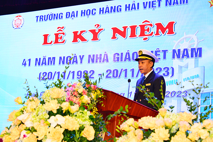 Lễ kỷ niệm 41 năm ngày Nhà giáo Việt Nam năm nay được tổ chức trong không khí toàn Trường đang quyết tâm triển khai nhiệm vụ năm học, năm thứ tư triển khai Nghị quyết Đại hội Đảng bộ trường Khoá 27, tiếp tục thực hiện chiến lược phát triển Nhà trường trở thành đại học trọng điểm quốc gia, đạt đẳng cấp quốc tế  với giá trị cốt lõi: "Trí tuệ - Sáng tạo - Trách nhiệm - Nhân văn”, khẳng định vị trí quan trọng của Nhà trường trong việc triển khai Nghị quyết 36/NQ-về “Phát triển bền vững kinh tế biển Việt Nam đến năm 2030 tầm nhìn 2045”, và Nghị quyết 45/NQ-TW của Bộ Chính trị về “Phát triển thành phố Hải Phòng đến năm 2030 tầm nhìn 2045”.