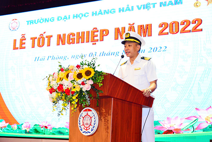 Gần 3 năm qua, cả Thầy và trò chúng ta đã phải trải những học kỳ chưa từng có tiền lệ, phải đối mặt với những khó khăn, thách thức trong bối cảnh đại dịch Covid-19. Chúng ta đã từng lo lắng, với nhiều băn khoăn, nhiều câu hỏi, mà một trong những câu hỏi quan trọng đó là liệu các em có kịp hoàn thành toàn bộ chương trình đào tạo để tốt nghiệp đúng hạn trong năm 2022 này không? Và câu trả lời ngày hôm nay là với sự đoàn kết đồng lòng, với sự kết nối và sẻ chia, với bản lĩnh, tinh thần luôn bên nhau và vượt qua tất cả. Hãy cùng nhau trân trọng và giữ vững sự kết nối ấy, tinh thần ấy bởi các em luôn có một mái nhà mang tên Mái trường Đại dương, có một gia đình mang tên Trường Đại học Hàng hải Việt Nam sẵn sàng giang tay chào đón các em như đón những đứa con đi xa trở về. "Một đàn hải âu nữa lại kiêu hãnh, tự tin sải cánh bay đến những bến bờ khát vọng.... Hãy vững bước trên đường đời, các em nhé! Thầy sẽ luôn đón đợi các em trở về."