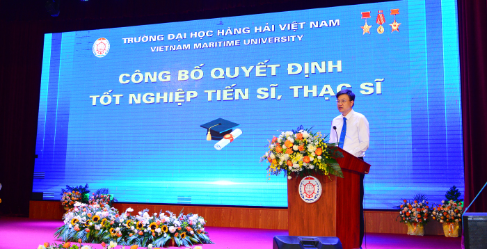 Đặc biệt Thầy Hiệu trưởng gửi gắm tới các tân tiến sĩ, tân thạc sĩ: với mỗi thử thách, thuận lợi khác nhau nhưng trong sâu thẳm mỗi chúng ta là sự quyết tâm vượt qua khó khăn, vượt qua chính mình để đem lại giá trị tốt nhất, những kết quả công trình nghiên cứu có tính ứng dụng thực tiễn cao. Trường Đại học Hàng hải Việt Nam luôn luôn trân trọng, ghi nhận sự cố gắng của các tân tiến sĩ, tân thạc sĩ, chúc các bạn sẽ thành công hơn nữa, đóng góp cho cơ quan đoàn thể, đất nước ngày càng phát triển, xứng đáng với niềm tin của Nhà trường, cơ quan, và gia đình.