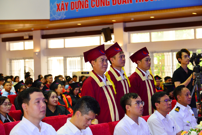 Đến dự buổi Lễ Tốt nghiệp và trao bằng tiến sĩ, thạc sĩ năm 2024, về phía Trường Đại học Hàng hải Việt Nam có PGS.TS. Nguyễn Khắc Khiêm - Bí thư Đảng ủy, Chủ tịch Hội đồng Trường; PGS.TS. Phạm Xuân Dương - Hiệu trưởng Nhà trường; các đồng chí đại diện Thường trực Đảng uỷ, Thường trực Hội đồng Trường, Ban Giám hiệu, Công đoàn, Đoàn Thanh niên, Viện Đào tạo Sau đại học, các Phòng chức năng, các Khoa, Viện và các tân tiến sĩ, tân thạc sĩ được nhận bằng tốt nghiệp năm 2024 cùng đông đảo các đối tác, bạn bè, gia đình đến chia vui, chúc mừng.