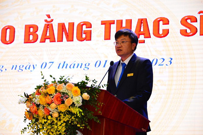 Tân Thạc sĩ Ngô Xuân Thủy đại diện 175 học viên cao học tốt nghiệp năm 2023 phát biểu