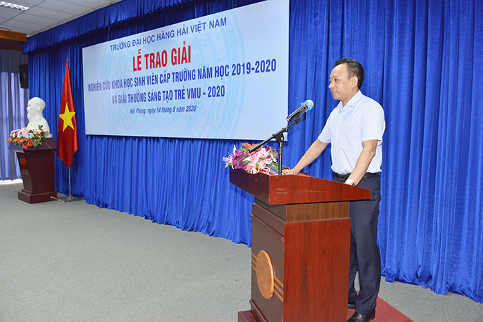 Phát biểu tại buổi lễ, PGS.TS Phạm Xuân Dương – Phó Bí thư Đảng ủy, Hiệu trưởng Nhà trường nhấn mạnh: nghiên cứu khoa học của sinh viên được xác định là một nhiệm vụ trọng tâm để nâng cao chất lượng đào tạo của Trường Đại học Hàng hải Việt Nam. Trải qua nhiều năm tổ chức, Giải thưởng “Nghiên cứu khoa học sinh viên cấp Trường” và “Sáng tạo trẻ VMU” đã thực sự trở thành một sân chơi khoa học lớn và có uy tín đối với sinh viên.