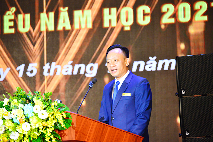 PGS. TS. Phạm Xuân Dương - Phó Bí thư Đảng ủy, Hiệu trưởng Trường Đại học Hàng hải Việt Nam phát biểu tại buổi lễ tuyên dương sinh viên tiêu biểu năm 2021-2022.