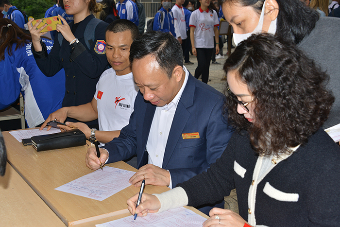 Về phía Trường Đại học Hàng hải Việt Nam có PGS. TS. Phạm Xuân Dương – Phó Bí thư Đảng ủy, Hiệu trưởng Nhà trường; cùng các đồng chí trong Đảng ủy, Ban Giám hiệu, Công đoàn, Đoàn Thanh niên, Hội Sinh viên Trường, các thầy, cô giáo đại diện các đơn vị Phòng, Ban, Khoa, Viện trong Trường; các đồng chí Bí thư, Phó Bí thư các cơ sở Đoàn trực thuộc, CLB Hiến máu tình nguyện Trường Đại học Hàng hải Việt Nam và sự có mặt của gần 500 bạn sinh viên trong và ngoài Trường.