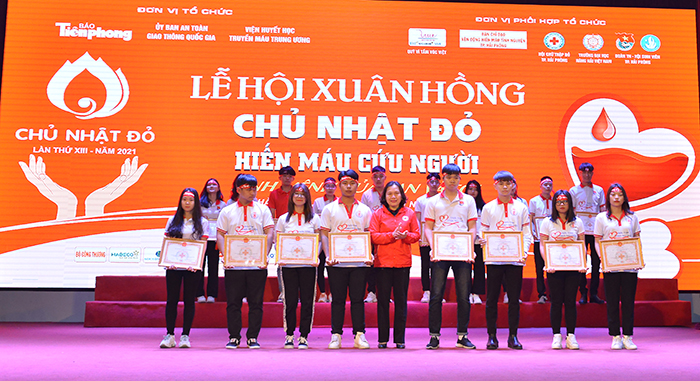 08h00 ngày 27/01/2021, Trường Đại học Hàng hải Việt Nam phối hợp với Báo Tiền Phong, Hội Chữ thập đỏ Hải Phòng, Trung tâm huyết học truyền máu Hải Phòng, Thành Đoàn - Hội Sinh viên Thành phố Hải Phòng, tổ chức chương trình “Lễ hội Xuân hồng - Chủ nhật Đỏ lần thứ 13 năm 2021”. Chương trình được tổ chức với mục đích tuyên truyền, vận động các lực lượng xã hội tích cực hưởng ứng phong trào hiến máu tình nguyện, từng bước mở rộng đối tượng tham gia hiến máu, góp phần dự phòng tình trạng thiếu máu trong dịp Tết nguyên đán 2021 và dịch Covid-19 vẫn đang diễn ra.