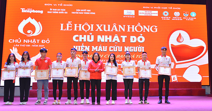 Hội Chữ Thập Đỏ thành phố tặng giấy khen của Hội cho 20 sinh viên của Trường nhân dịp Lễ hội xuân hồng – Chủ Nhật Đỏ lần thứ 13 năm 2021.