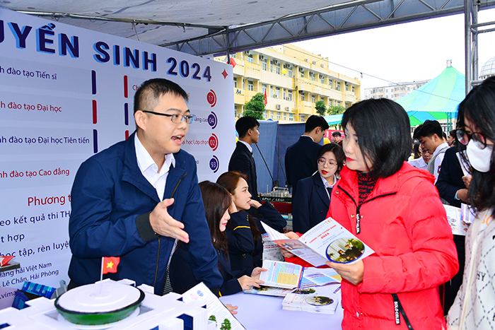 Sáng 10/3, Chương trình tư vấn tuyển sinh, hướng nghiệp năm 2024 do Báo Tuổi trẻ, Vụ Giáo dục đại học (Bộ Giáo dục và Đào tạo), Tổng cục Giáo dục nghề nghiệp (Bộ Lao động - Thương binh và Xã hội), Sở Giáo dục và Đào tạo Hải Phòng, Thành Đoàn Hải Phòng và Trường Đại học Hàng hải Việt Nam phối hợp tổ chức đã thu hút đông đảo phụ huynh, học sinh THPT tham gia cùng gần 100 gian tư vấn của các trường đại học, cao đẳng, các đơn vị giáo dục trên cả nước.