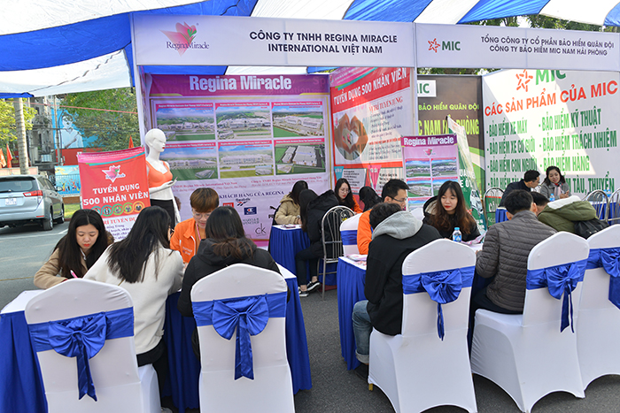 Ngày hội việc làm năm nay được tổ chức công phu và quy mô, có 19 gian hàng tuyển dụng với gần 1700 chỉ tiêu tuyển dụng, thu hút đông đảo các bạn sinh viên tham gia với mong muốn tìm được một công việc phù hợp. Nhiều công ty lớn cũng góp mặt trong ngày hội, mang tới những cơ hội nghề nghiệp với mức lương hấp dẫn như: Công ty TNHH LG ELECTRONICS Việt Nam; Công ty TNHH LG DISPLAY Việt Nam; Công ty TNHH Công nghệ máy văn phòng KYOCERA Việt Nam; Công ty TNHH HORN Việt Nam; Công ty TNHH sản xuất lốp xe Bridgestone Việt Nam; Công ty TNHH Rorze Robotech,…Có gần 1.000 bạn sinh viên tốt nghiệp và đang học theo tham gia ứng tuyển, phỏng vấn trực tiếp tại các gian hàng và qua Cổng thông tin việc làm của Nhà trường, hơn 700 bạn được các doanh nghiệp tuyển dụng làm việc toàn thời gian, bán thời gian và thực tập sinh.