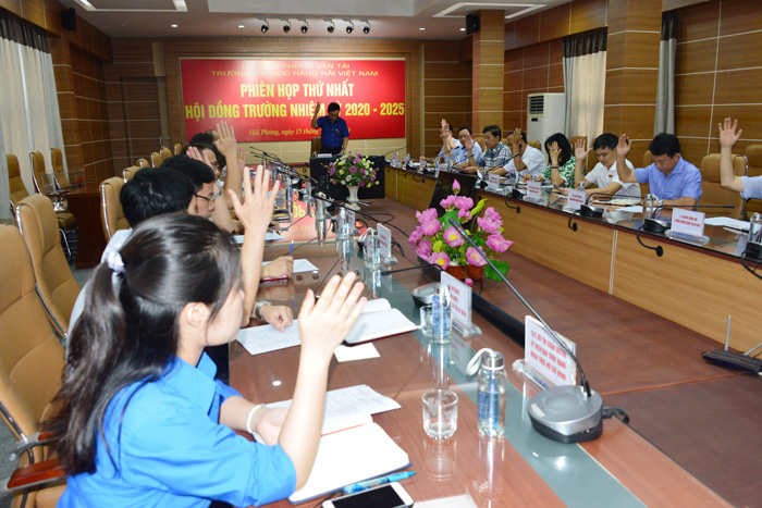 Căn cứ Luật Giáo dục đại học (năm 2012), Luật Sửa đổi bổ sung một số điều của Luật giáo dục đại học (năm 2018) và Nghị định số 99/2019/NĐ-CP ngày 30/12/2019 của Chính phủ quy định chi tiết và hướng dẫn thi hành một số điều của Luật Sửa đổi, bổ sung một số điều của Luật Giáo dục đại học, chiều ngày 15/5/2020, Hội đồng trường Trường Đại học Hàng hàng Việt Nam nhiệm kỳ 2020 - 2025 đã nhóm họp phiên thứ I để thống nhất bầu chức danh chủ chốt của Hội đồng dưới sự chủ trì của PGS.TS. Nguyễn Viết Thành.